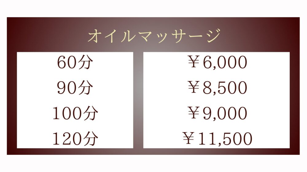 指圧だけのマッサージとは違い特殊なマッサージなので、初めての方は60分のコースから受けてみてください。